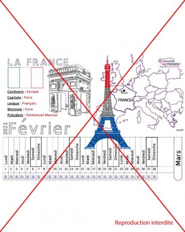 - 2 feuilles qui contiennent des languettes à découper pour indiquer les évènements (anniversaires, voyages, fêtes, vacances .....) à placer sur le calendrier.